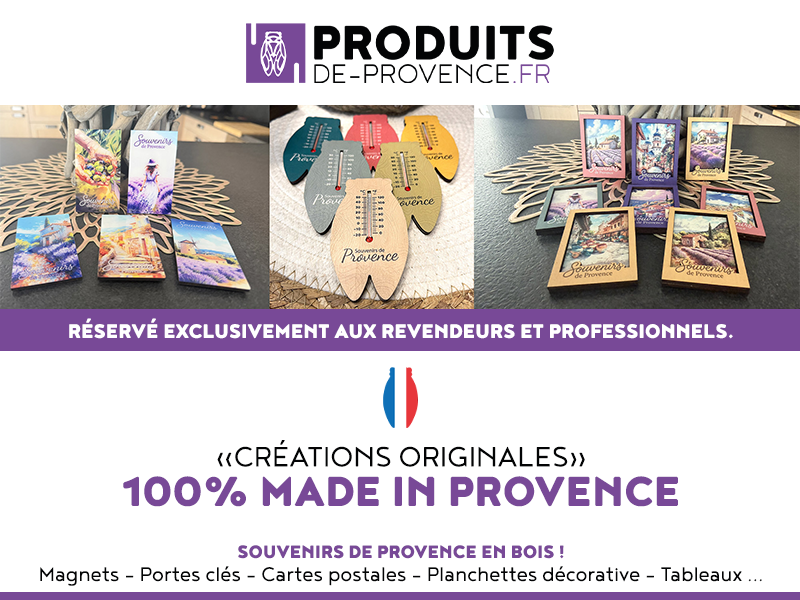 Nous offrons aux professionnels (boutiques, musées, offices de tourisme) une gamme de souvenirs 100% Provence qui cassent les codes.